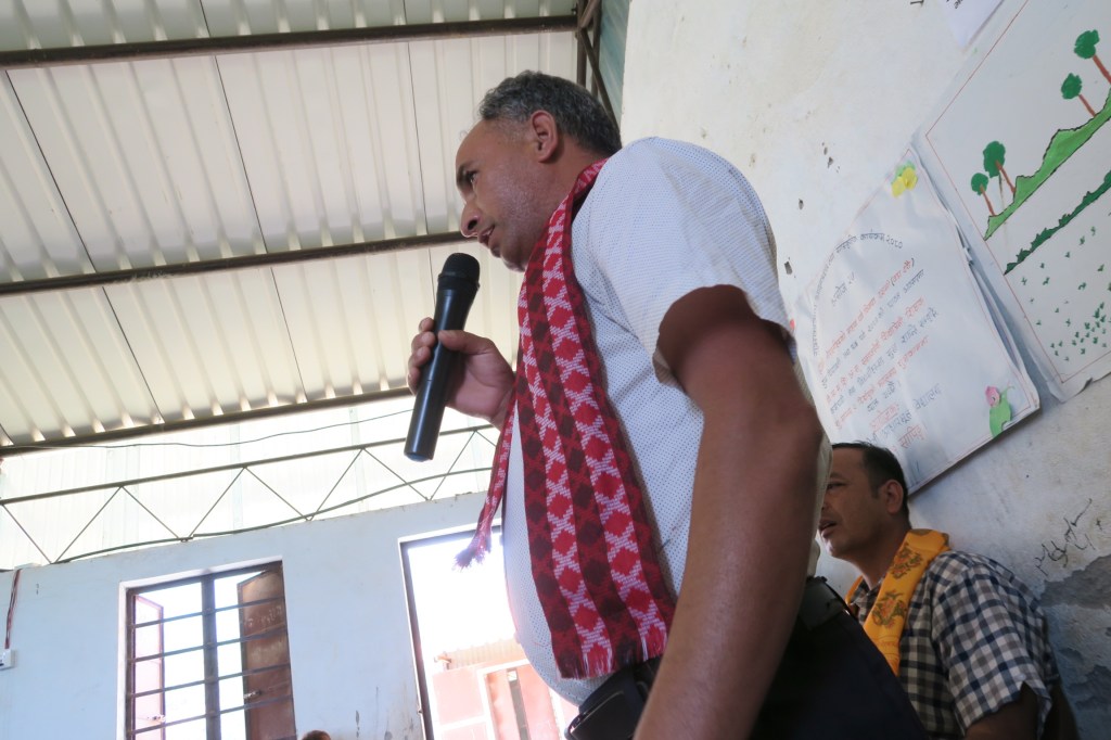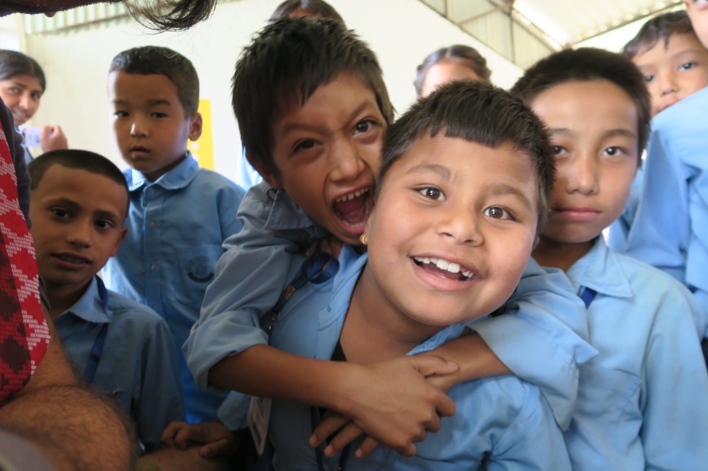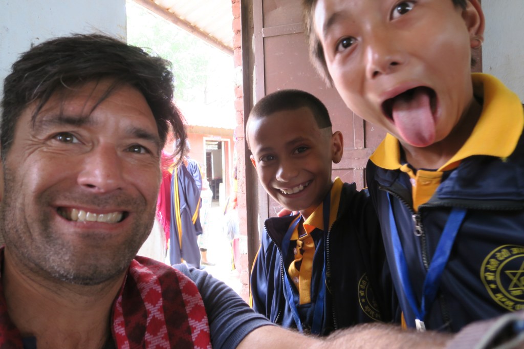 Last week Uttam and Richard went up to the Saping village to deliver new outfits to the 50 kids studying there. A navy blue with yellow collar polo, sports pants and jackets and even a pair of sneakers with the school logo on it.